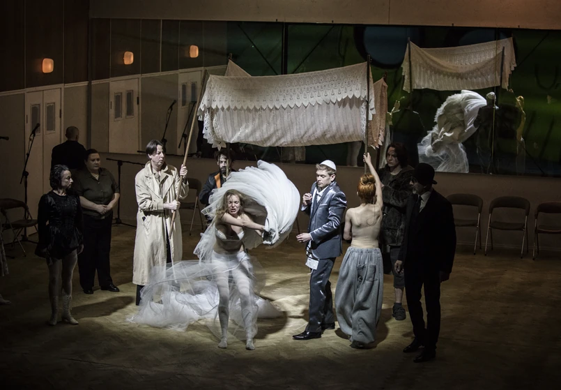 "Maja Kleczewska i Łukasz Chotkowski (autor scenariusza - PAP) nadają tej historii szersze znaczenie, czyniąc z niej opowieść o złamanym przymierzu pomiędzy narodami i powracającej pamięci. W tym kontekście szczególnie istotna staje się historia i przestrzeń Teatru Żydowskiego, wybudowanego w centrum przedwojennej dzielnicy żydowskiej i na terenie dawnego Getta Warszawskiego, a zburzonego prawie dokładnie dwa lata po premierze "Dybuka" w kwietniu 2017 roku" - przypomniał teatr w opisie wtorkowego spektaklu.