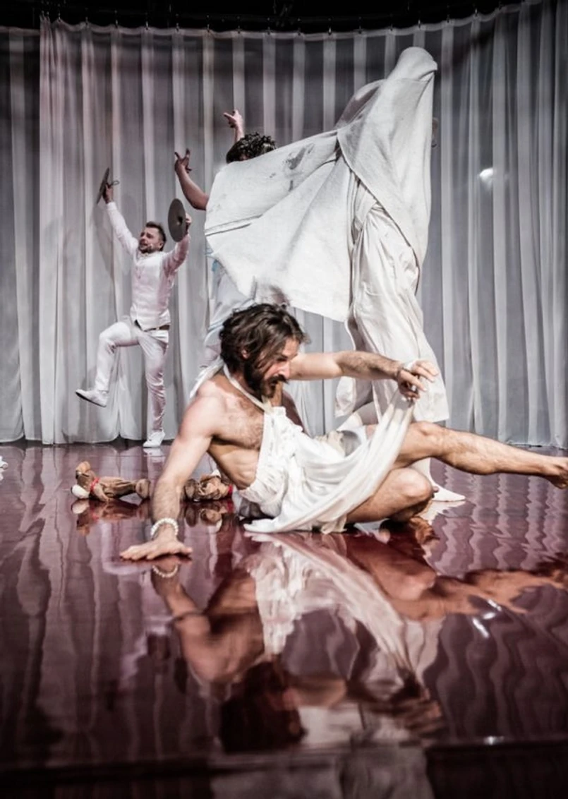 Tym razem jednak Kleczewska nie poprzestaje jedynie na takiej konstatacji, powstrzymuje się też przed spektakularnymi oskarżeniami. Zwyrodniały ojciec w interpretacji Mateusza Łasowskiego ma w sobie przerażającą zwyczajność, nie wyróżnia się z tłumu. Sczepiona z dmuchaną sekslalą Karolina Adamczyk przede wszystkim pragnie odbudować relację w matką, bo jest od niej uzależniona. Beata Ziejka gra idealną gospodynię i opowiada, co kryją różne piwnice, przygotowując metodycznie owocowy koktajl. Na koniec tylko doprawia go prochami z urny. W świecie Kleczewskiej jest miejsce na okrutny humor sąsiadujący z bezprzykładnym okrucieństwem. Jednym z najbardziej wstrząsających momentów jest monolog gwałconej córki (wspaniała Julia Wyszyńska). Zaraz potem szop pracz (równie dobry Michał Czachor) wygłasza brutalną filipikę przeciw wszystkim ofiarom, próbującym zrzucić na barki zdrowych i sytych swoje nieszczęścia. Na koniec zaś Kleczewska sama definiuje siebie. Obraca w proch sceniczny świat podczas szalonej orgii, z litrami farby, pierzem i kolorowym pyłem. Aktorzy tarzają się w tym wszystkim nago, a reżyser puszcza oko do widowni. Choć bywa oskarżana o uleganie nowoczesnej hucpie, wie, jak przerobić ją na sztukę. I wtedy wszystko ze wszystkim się zgadza, chociaż jest bardzo mokro i bardzo czerwono. Na koniec Michał Czachor w charakterystycznej dla pisarki fryzurze, spódnicy i szpilkach rozpoczyna ostatni monolog „Podróży zimowej”, pisany jako osobiste wyznanie Elfriede Jelinek. „Dalej chce pani, żebyśmy dalej wysłuchiwali tej samej pani śpiewki” – pyta wielokroć matowym, miękkim, monotonnym głosem. Pyta do wyrzygania, niektórzy wychodzą. Przypomina się przedziwny koncert – performance Sebastiana Pawlaka w „Babel”, też na granicy wytrzymałości. Kleczewska bierze pytania Jelinek za własne, jeszcze ubiera je w serię przerażających, ale pięknych obrazów. W aktorach Teatru Polskiego w Bydgoszczy wzmocnionych dwojgiem (Beata Ziejka, Jakub Firewicz) z Teatru Powszechnego w Łodzi znajduje towarzyszy swojej podróży. Ten spektakl pokazuje sens ostatnich poszukiwań artystki. Czasem chybiła, czasem wpadała w grafomanię. Tym razem jednak zbliżyła się do arcydzieła.
