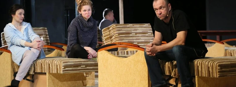 Takie potraktowanie „Lodu”, a przede wszystkim publiczności, może jednak grozić odwetem. Już po premierze dało się słyszeć, że to audiobook albo w najlepszym razie słuchowisko. Nic bardziej mylnego. Niby fakt, że aktorzy Narodowego wychodzą na scenę w przypominających prywatne strojach, zasiadają na owych kanapach i wygłaszają tekst dialogów z powieści pozornie beznamiętnie, jakby ją relacjonowali. Wystarczy jednak baczniejsze spojrzenie, aby zrozumieć, że ich przezroczystość jest zaprogramowaną przez inscenizatora i fantastycznie zastawioną na nas pułapką. Bowiem aktorzy Narodowego nie tylko mówią słowami z „Lodu”, ale też tworzą na scenie sylwetki jego bohaterów. Do tego jeszcze wchodzą pomiędzy sobą w zmienne i fascynujące relacje. Oto Wiktoria Gorodeckaja i Waldemar Kownacki w etiudzie o prostytutce, która ciałem płaci taksówkarzowi za kurs, a potem tłumaczy się przed swoim alfonsem. Obie role zagrane niemal wyłącznie głosami, a są w nich oddanie i okrucieństwo – po równi. Bogomołow spowodował właśnie to, że aktorzy Narodowego stają przed nami celowo puści i przezroczyści. Mają wypełnić narrację Sorokina, uwiarygodnić drastyczność jego prozy i jej ckliwe, ocierające się o kicz, ale i wzruszenie piękno tylko głosami właśnie. I dzięki nim, a także poprzez urywane gesty budują wielką opowieść niejako ponad słowami, ponad językiem Sorokina. Powołują do życia – przepraszam za patos – całkiem osobny język teatru, jak najbardziej adekwatny do zmierzenia się z „Lodem”.