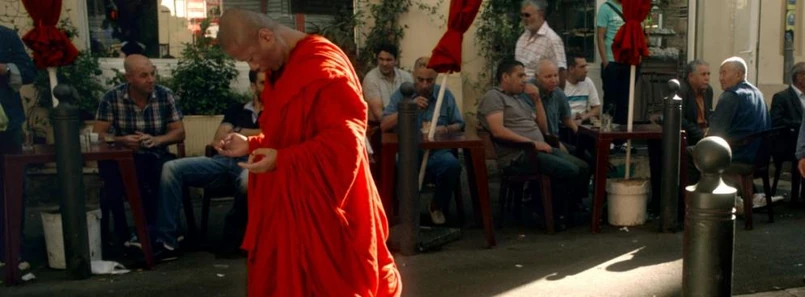 Chiński reżyser opowiada historię buddyjskiego mnicha, który przemierza zatłoczone ulice Marsylii. Wbrew wielkomiejskiemu zgiełkowi mężczyzna porusza się w ostentacyjnie wolnym tempie, kontempluje każdy krok i traktuje pozornie bezrefleksyjną czynność z najwyższym skupieniem. W pewnym momencie jego śladem zaczyna iść także Francuz grany przez Denisa Lavanta. „Wędrówka na zachód” staje się nie tylko opowieścią o milczącym sojuszu zdolnym obalić kulturowe bariery. To także spełnienie fantazji o wyzwalającej ucieczce od codziennej rutyny.