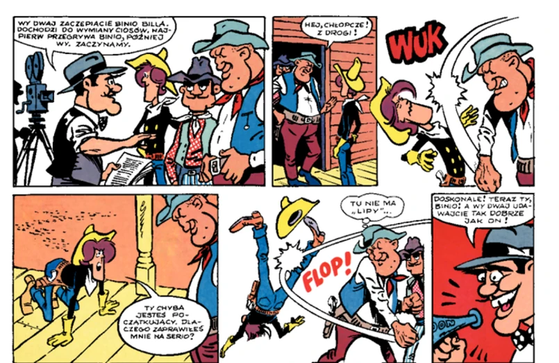 Do trzech razy sztuka. Po nieudanych próbach zainteresowania komiksem o Binio Billu wydawnictwa Sport i Turystyka, dla którego rysował już od paru lat, a potem redakcji „Relaxu”, Jerzy Wróblewski podesłał swoje komiksy do „Świata Młodych”. Tam się spodobały. Pierwszy odcinek ukazał się drukiem 12 czerwca 1980 roku. Kolejne pojawiały się na łamach „Świata Młodych” trzy razy na tydzień. Był to pierwszy opublikowany pełnowymiarowy autorski komiks Wróblewskiego. Łącznie gazeta w latach 1980-1986 wydrukowała aż siedem albumów z przygodami Zbigniewa Bilewicza, przybysza z Polski, którego na Dzikim Zachodzie przechrzczono na Binio Billa, i jego rumaka Cyklona. Rzecz jasna dopatrywano się zbytniego podobieństwa do słynnego Lucky Luke’a, szczególnie że Wróblewski zrezygnował z realistycznego stylu na rzecz kreskówkowej umowności i postawił na przemieszany z przygodą humor. I choć może faktycznie nawiązywał do słynnego komiksowego kowboja, należy pamiętać, że fascynacja westernem u polskiego artysty narodziła się jeszcze w czasach pacholęcych. Miłością do Dzikiego Zachodu zaraził go starszy brat Zygmunt i młody Jerzy potrafił cały tydzień spędzić w kinie, codziennie kupując bilet na ten sam western.