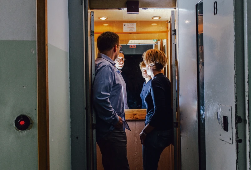 A.H.: Starą windę w wieżowcu znaleźliśmy na warszawskim Bemowie. Ale już kawałek klatki schodowej i oczywiście obydwa mieszkania zbudowaliśmy w hali zdjęciowej.